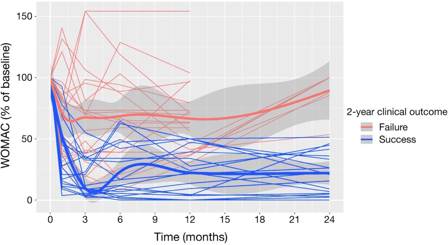 LC: GAE is gaining increasing acceptance as a treatment for knee osteoarthritis. However, the long-term data is limited specifically for this treatment. As a result, the focus of our study was to present the 2-year follow up data for our GAE patients. Our 1-year data was previously published by Siddharth A. Padia, MD, FSIR, in 2021 in the Journal of Bone and Joint Surgery. Two important features of our study that are worth noting is first, we used a relatively high bar for clinical success, which was at least a 50 percent decrease in Western Ontario and McMaster Universities Osteoarthritis Index (WOMAC) scores.