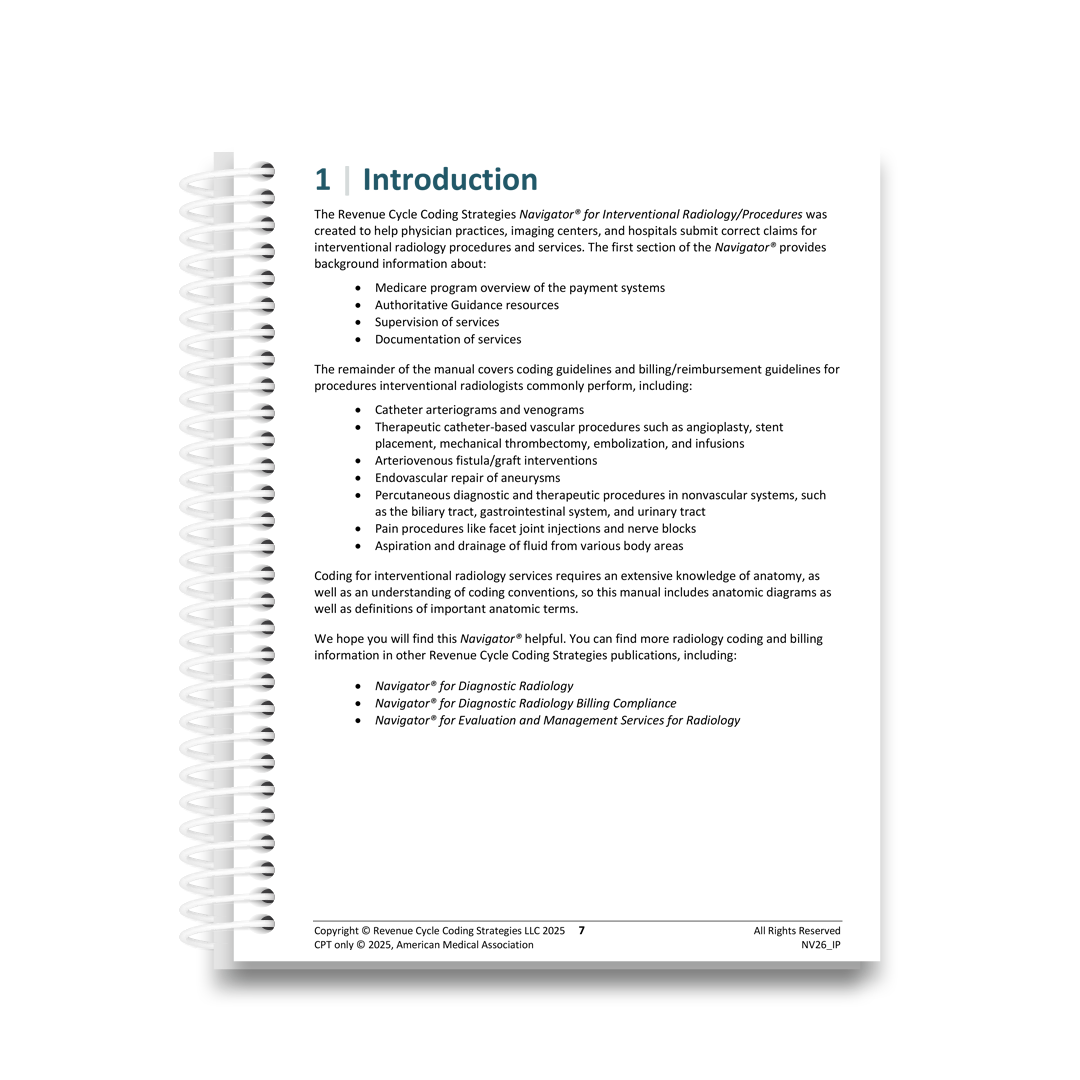 This product includes the 2026 Navigator® Interventional Radiology Manual and the 2026 Interventional Procedures Job Aid in print-on-demand.