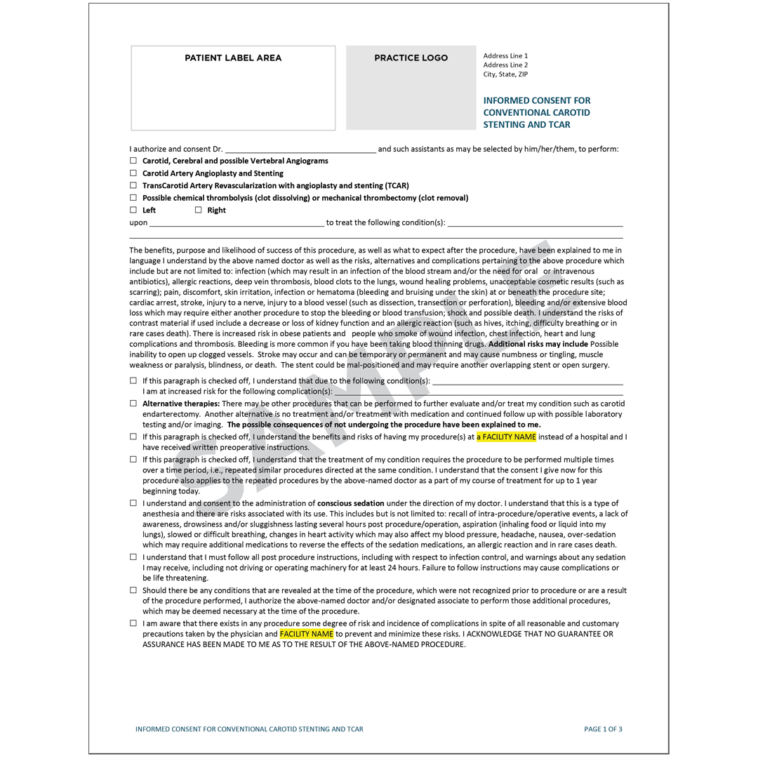 Conventional Carotid Stenting and TCAR Consent