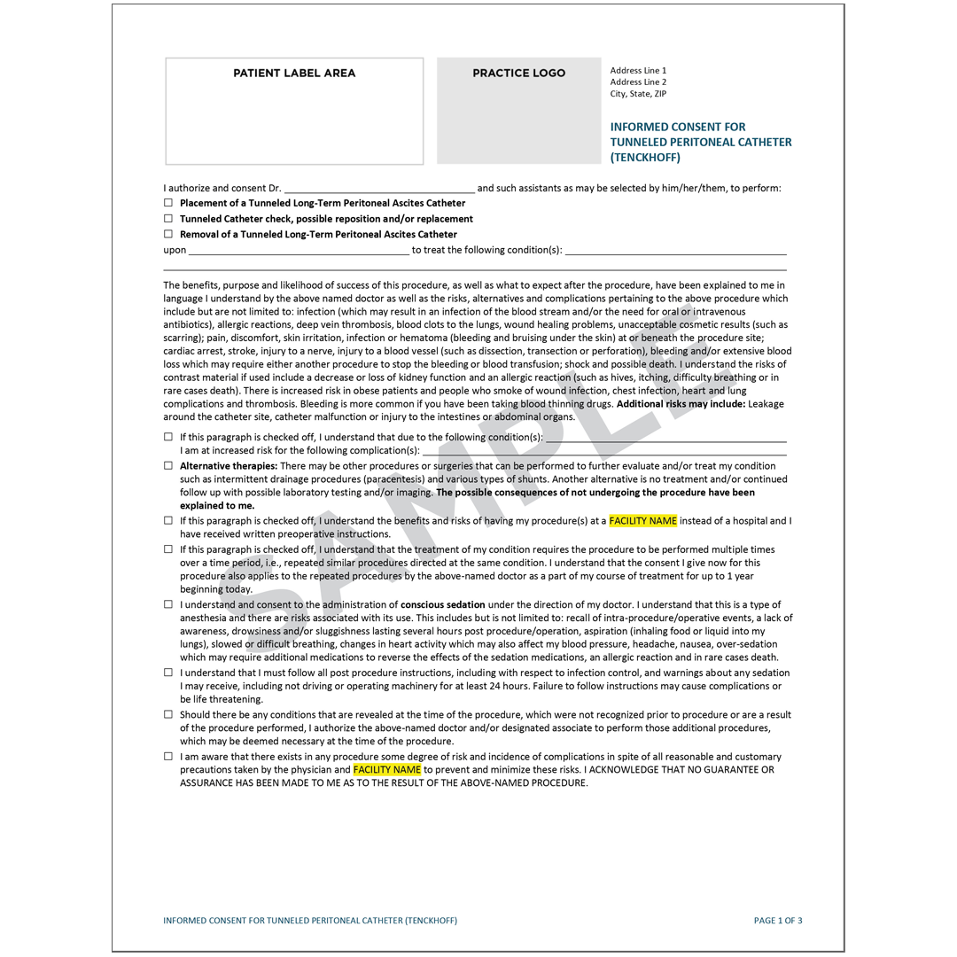 Tunneled Peritoneal Catheter (Tenchkhoff) Consent